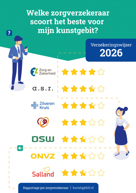 Met de Verzekeringswijzer Tandprothetische Zorg kunt u aan de hand van een sterrenbeoordeling de voor u best passende zorgverzekering kiezen voor wat betreft tandprothetische zorg. U heeft tot en met 31 december 2025 de mogelijkheid om te veranderen van zorgverzekeraar. De Verzekeringswijzer Tandprothetische Zorg is een initiatief van de beroepsvereniging van tandprothetici (ONT).